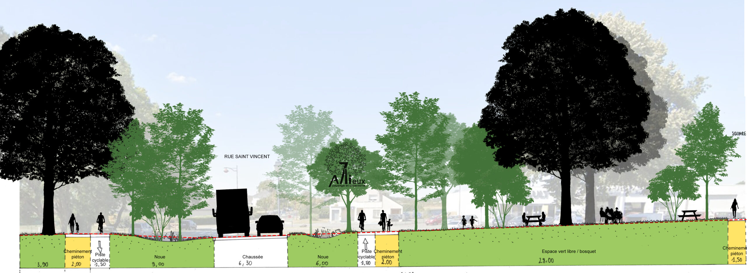 Rôle dans la mission : Agence 7 lieux paysagiste urbaniste co-traitant associé à PRAGMA ingenierie mandataire