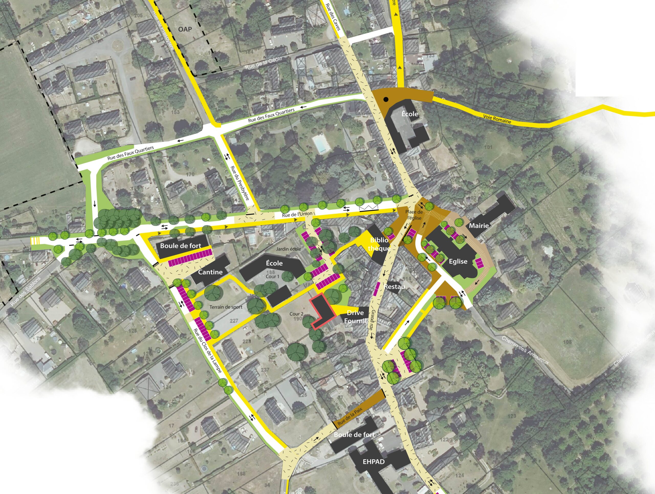 – Apaiser le coeur de bourg en lien avec les commerces et équipements