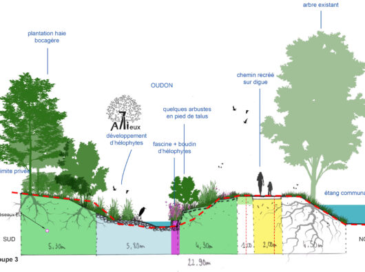Notre rôle dans l’étude est d’accompagner Hydroconcept sur le choix des scénarios, les choix d’implantation, la prise en compte des usages, l’insertion et la perception des aménagements, les choix de mise en oeuvre (plantations, parcours doux…), dans le cadre d’une concertation continue avec les élus et les riverains ainsi que la production d’éléments de communication.